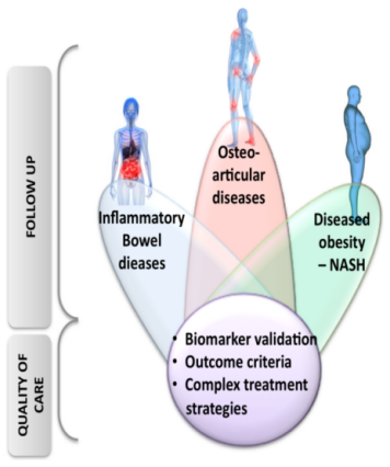 New models of patient-reported outcomes (PRO) are suitable for the development of criteria using measurement theory. Biomarker validity will be assessed to predict the evolution of diseases and thus to improve quality of care. Innovative care strategies will undergo medico-economic assessment to support decision-making.
